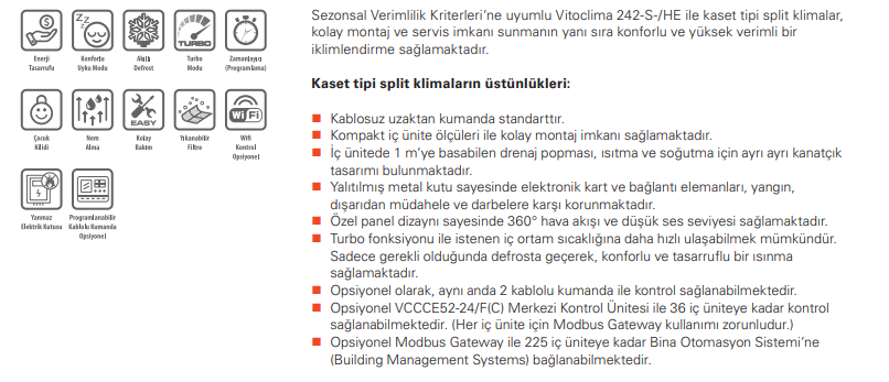 VITOCLIMA 42.000 BTU KASET TİPİ KLİMA MONOFAZE 242-S CS2125MHE2 R32